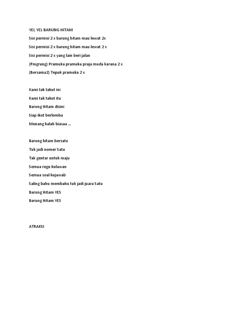 Nada Lagu Kuda Lumping Ada sebuah regu pramuka namanya si regu serigala Ada serigala kuat dan setia. Contoh Yel yel pramuka berikut menggunakan nada lagu doraemon tau kan. Kata yel yel motivasi.
