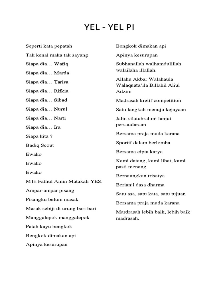 Tinggi moral kuat mental. Yel-Yel Versi Aku Punya Anjing Kecil. Hai semua lihat kami regu Mawar yang paling hepi.